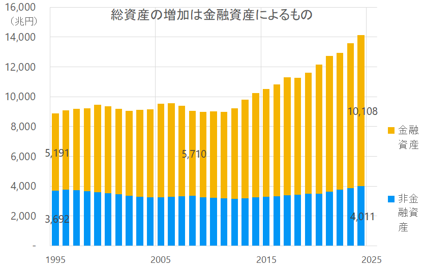 下図は日本の総資産の推移です。