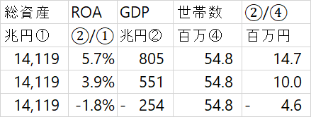 そうしたら、日本のGDPは800兆円を超えていたはずです。日本の世帯数54.8百万で割れば、一世帯あたりの所得は460万円増えていたことになるのです。