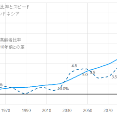 昨日、高齢化のスピードを計算してみたのですが、国連の人口推計2022(中位)があったので、将来のスピードもみてみました。