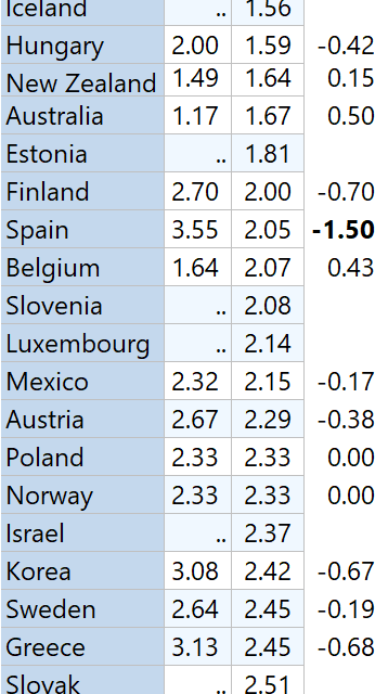 ハンガリーの賃金が安いのが際立ちますね。さすが日清食品が工場造っただけあります。ただ、私が話した人は知的レベルも高く、安すぎだなと思いますけど。インフラ投資が不十分で製造業が立ち上がっていないのでは?と想像します。