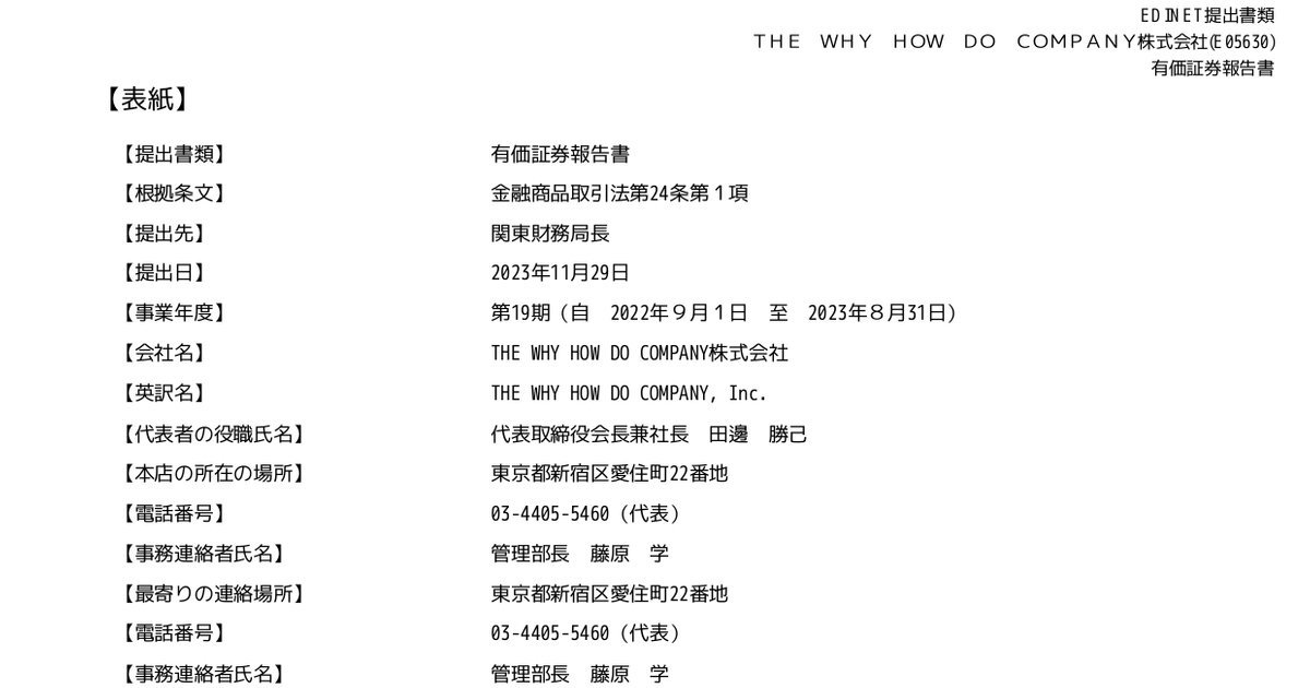 THE WHY HOW DO COMPANY[3823]:有価証券報告書-第19期(2022/09/01-2023/08/31) (有価証券報告書) :日経会社情報DIGITAL:日本経済新聞