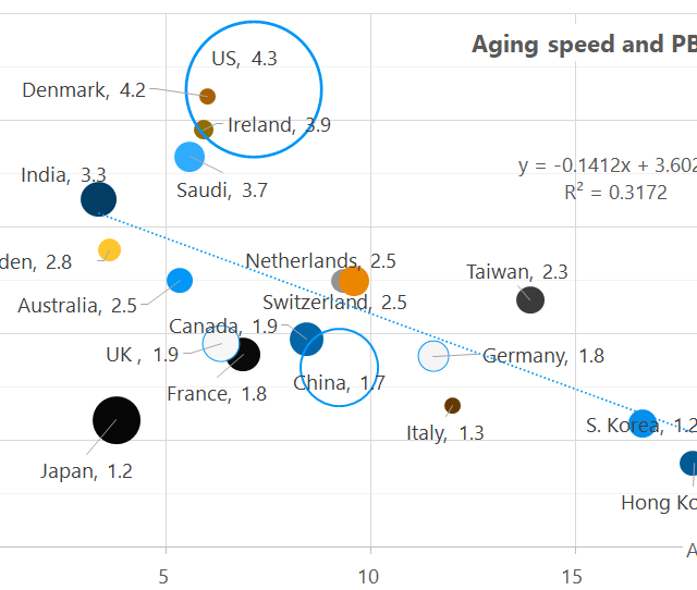 上昇期間が9年超えていますが、20倍切っています。通貨危機の教訓から学んだとも言えますが、”This time is different” でしょうか。