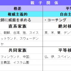 4~5位は、絶対核家族。同じ絶対核家族なのに、英米などと差が出た原因は、興味深いところです。