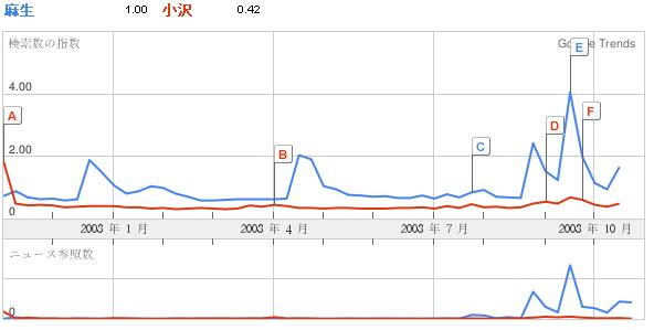 ネット検索数推移: 麻生 vs. 小沢